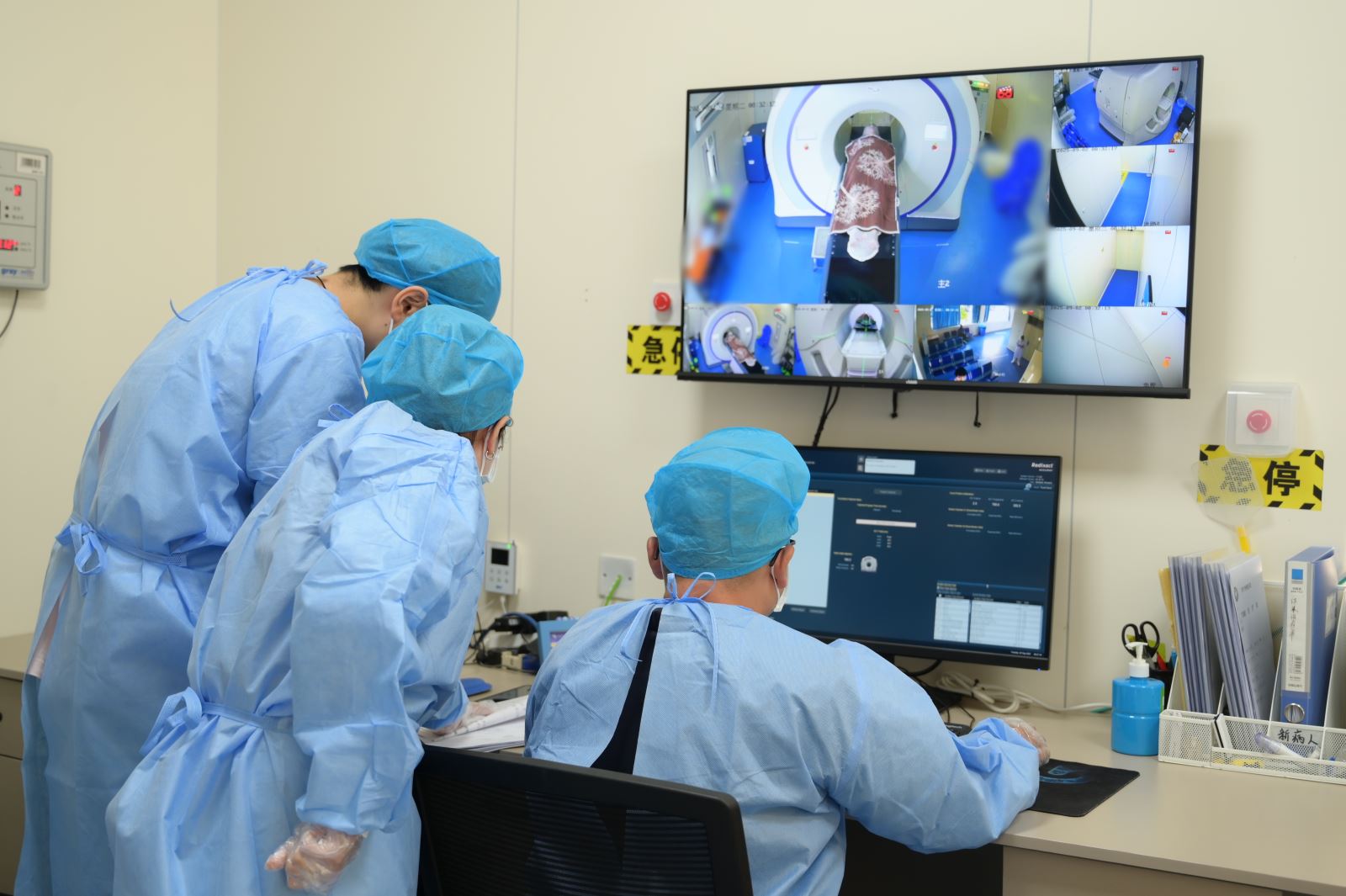 为确保治疗顺利实施,济宁肿瘤医院联合多学科专家,包括放疗医师、物理师、放疗技师及院感专业人员成立了治疗小组,围绕患者病情、照射范围及治疗风险等作了深入讨论。针对该患者身材较高、白细胞水平极低等高危因素,医院在正式放疗前进行了为期一周的周密准备,通过紫外线照射、酒精消毒等形式,对CT定位室、放射治疗室进行了全方位的消杀,严格防控感染风险。